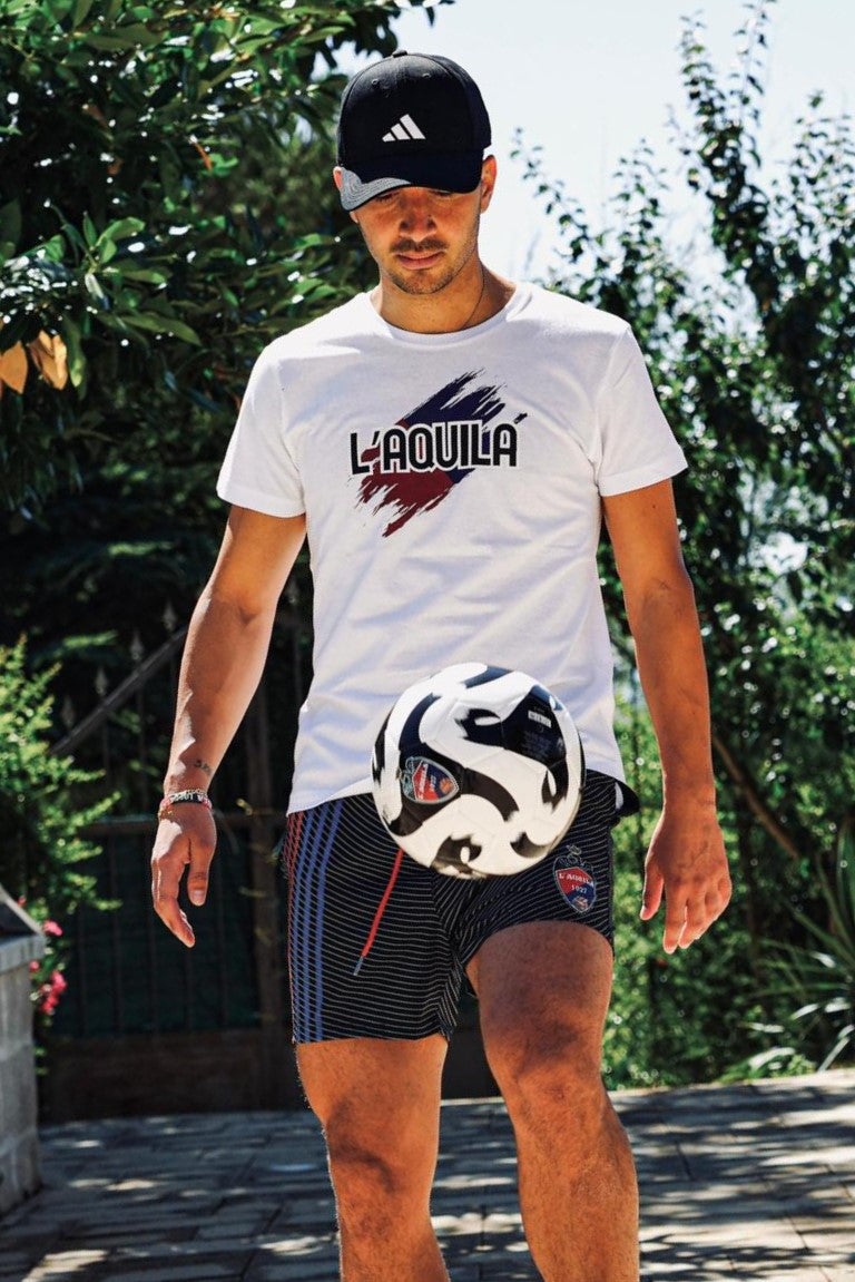 T Shirt 2025 Scritta L'aquila Pennellata Rossoblu - Bianco